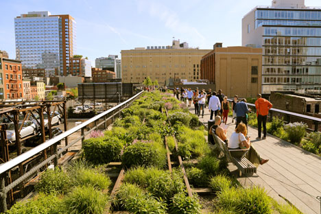 The old elevated train line is transformed into a park, with a linear landscaping system.